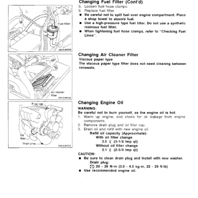 Oil changes, filter replacement, spark plugs